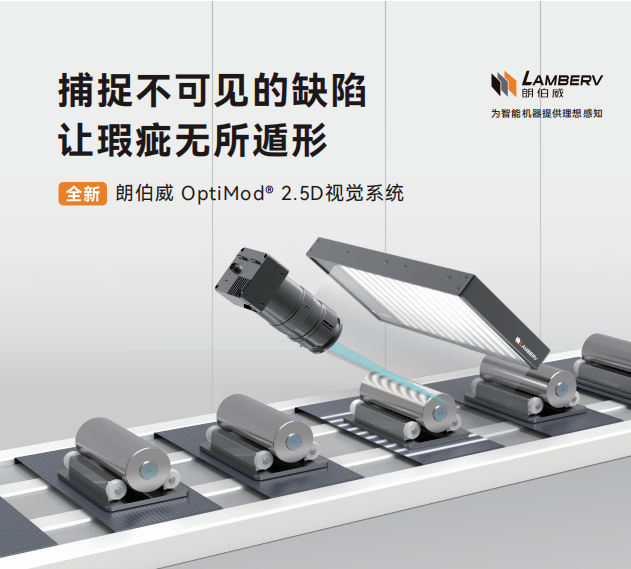 朗伯威 OptiMod™2.5D视觉系统是一款专门用于金属、玻璃、覆膜等高反光工件表面细小缺陷检测的高端工业视觉传感产品。