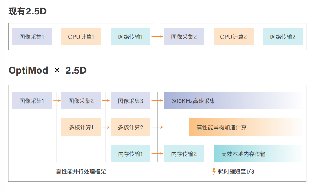 3,000,000次/秒编码光照投射速率; 37.5KHz 扫描速率; 140fps拍摄速率; 支持1000mm/s线体速度。